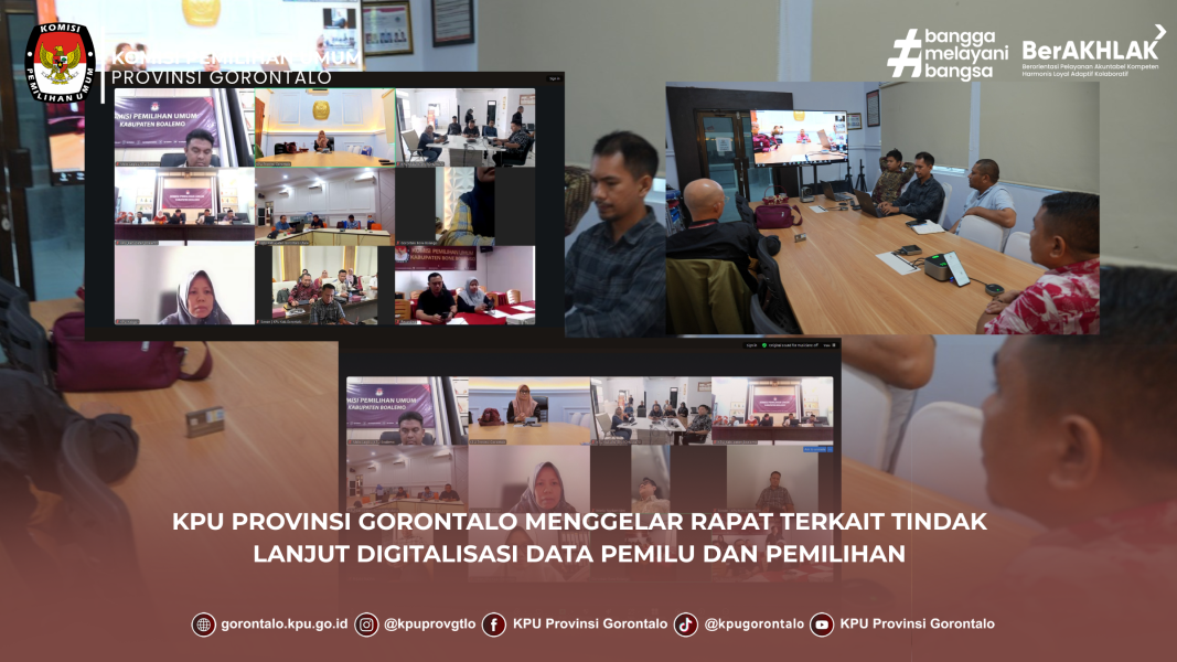 Gorontalo - Komisi Pemilihan Umum (KPU) Provinsi Gorontalo menggelar rapat secara daring terkait Tindak Lanjut Digitalisasi Data Pemilu dan Pemilihan bersama KPU Kabupaten/Kota se-Provinsi Gorontalo. Kegiatan ini dirangkaikan dengan rapat koordinasi persiapan Pemutakhiran Data Pemilih Berkelanjutan (PDPB) Triwulan III Tahun 2025, yang berlangsung di Ruang PPID KPU Provinsi Gorontalo pada Rabu (24/09/2025).