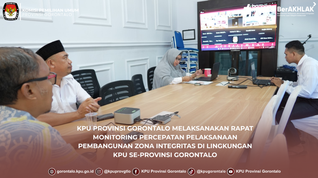 KPU Provinsi Gorontalo menggelar Rapat Monitoring Percepatan Pelaksanaan Pembangunan Zona Integritas di Lingkungan KPU Se-Provinsi Gorontalo