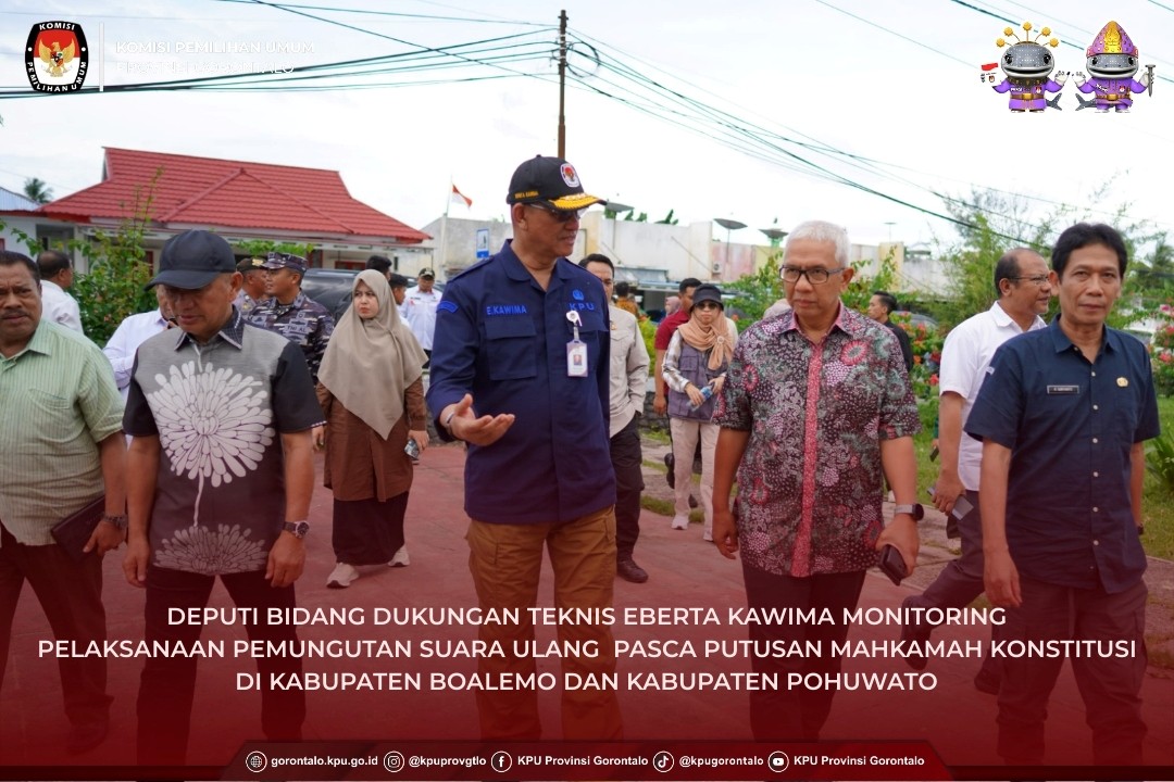 #TemanPemilih, Deputi Bidang Dukungan Teknis, Eberta Kawima, yang didampingi oleh Anggota KPU Provinsi Gorontalo, Hendrik Imran dan Sophian Rahmola, serta Plt. Sekretaris KPU Provinsi Gorontalo, R. Suryanto, bersama Pj. Gubernur Mohammad Rudy Salahuddin dan Forkopimda Provinsi Gorontalo memantau langsung proses pemungutan suara PSU di Kabupaten Pohuwato pada Sabtu (13/07/2024).