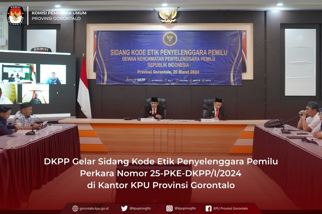Dewan Kehormatan Penyelenggara Pemilu (DKPP) telah selesai menggelar sidang pemeriksaan dugaan pelanggaran Kode Etik Penyelenggara Pemilu (KEPP) Perkara Nomor 25-PKE-DKPP/I/2024 di Kantor KPU Provinsi Gorontalo, Kota Gorontalo, pada Rabu (20/3/2024).