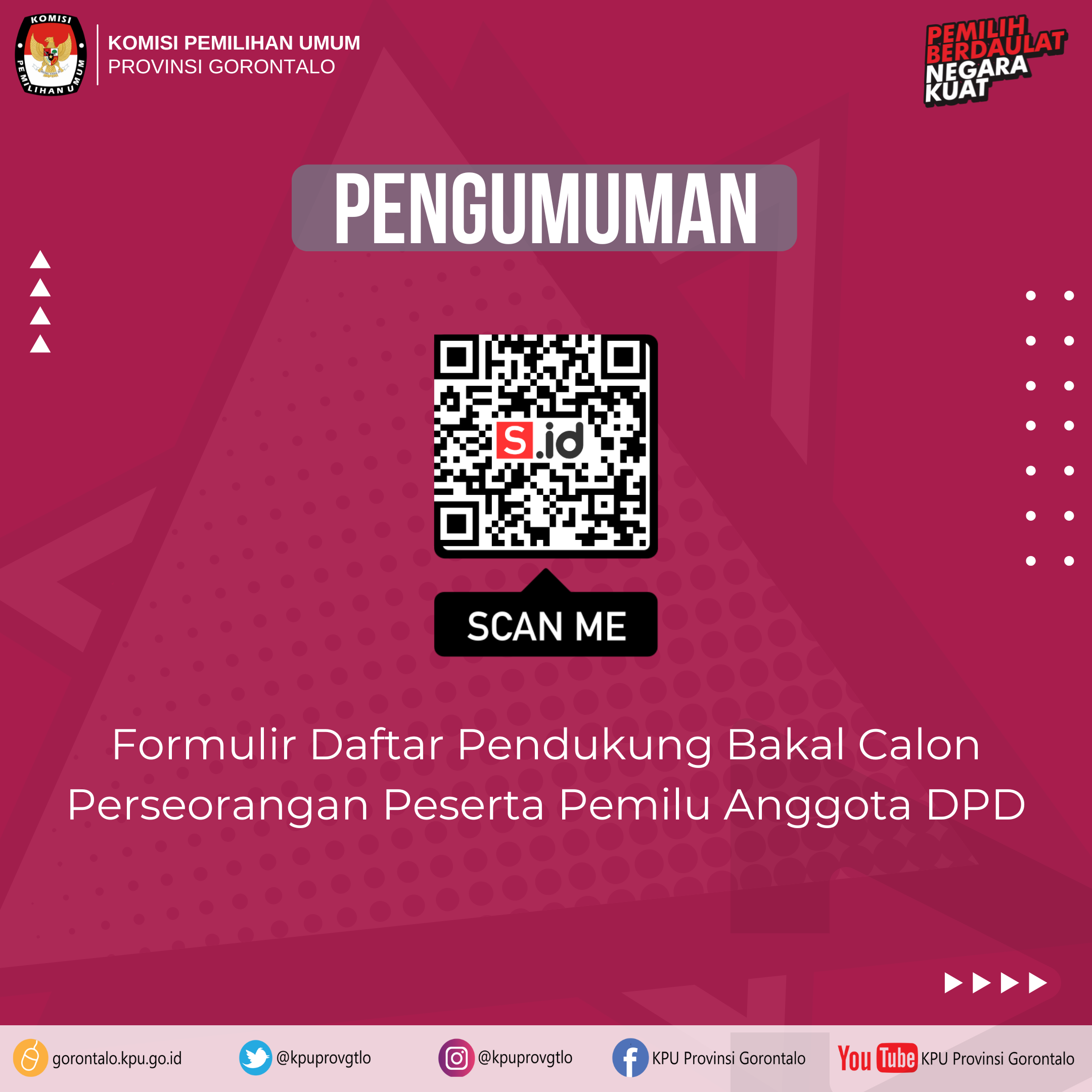 Sesuai dengan ketentuan Pasal 182 huruf p dan Pasal 183 Undang-undang Nomor 7 Tahun 2017 tentang Pemilihan Umum bahwa bakal calon perseorangan Peserta Pemilu anggota DPD dipersyaratkan mendapatkan dukungan minimal dari pemilih di daeerah pemilihan yang bersangkutan, disampaikan hal-hal sebagai berikut:
