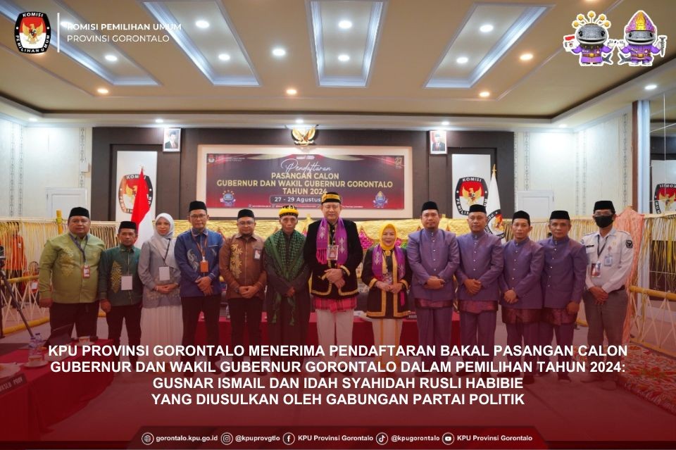 Plt. Ketua KPU Provinsi Gorontalo Risan Pakaya mengatakan bahwa dari hasil pemeriksaan dokumen pencalonan Bakal Pasangan Calon Gubernur dan Wakil Gubernur Gusnar Ismail dan Idah Syahidah Rusli Habibie dinyatakan lengkap dan benar dengan status diterima serta diberikan tanda terima dan surat pengantar pemeriksaan kesehatan.