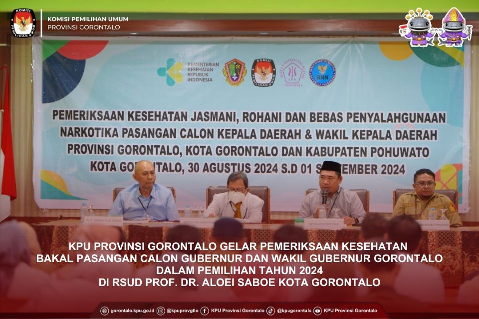 KPU Provinsi Gorontalo bekerja sama dengan (RSUD) Prof. Dr. Aloei Saboe melaksanakan Pemeriksaan Kesehatan Bakal Pasangan Calon Gubernur dan Wakil Gubernur Gorontalo