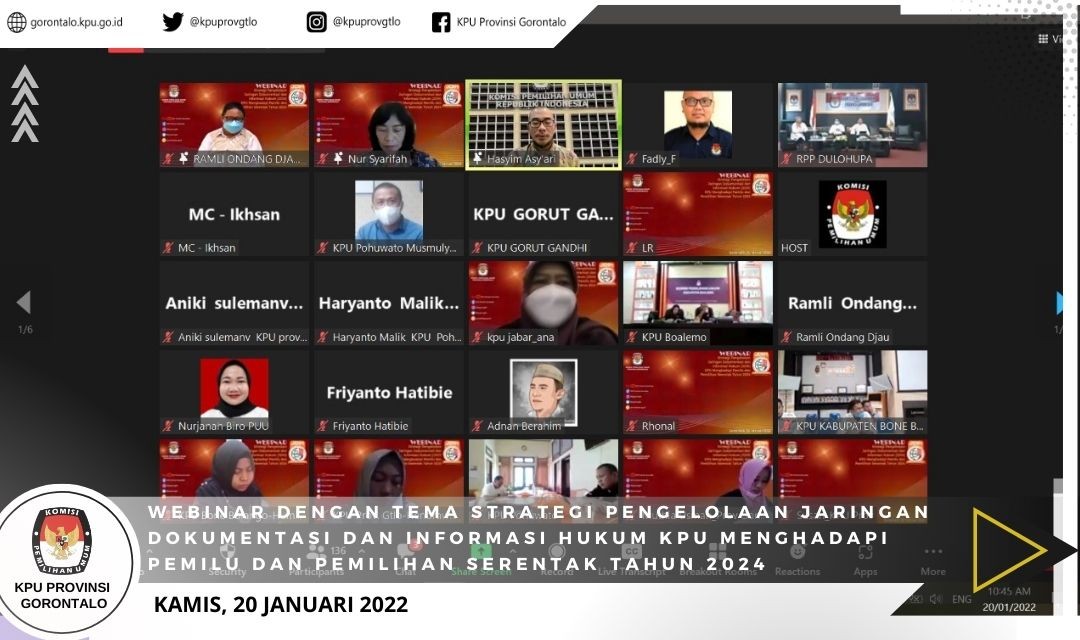 KPU Provinsi Gorontalo gelar Webinar JDIH dalam menghadapi Pemilu dan Pemilihan Serentak Tahun 2024