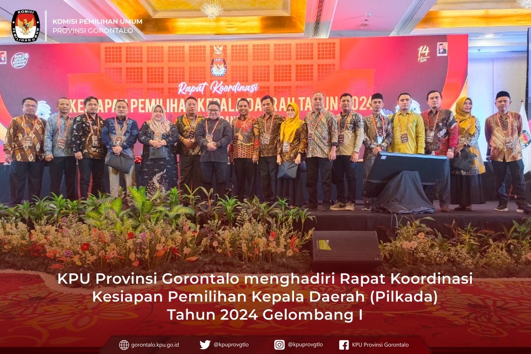 KPU Provinsi Gorontalo menghadiri Rapat Koordinasi Kesiapan Pemilihan Kepala Daerah (Pilkada) Tahun 2024 Gelombang I yang dilaksanakan oleh KPU RI di Jakarta, 22-24 September 2023.