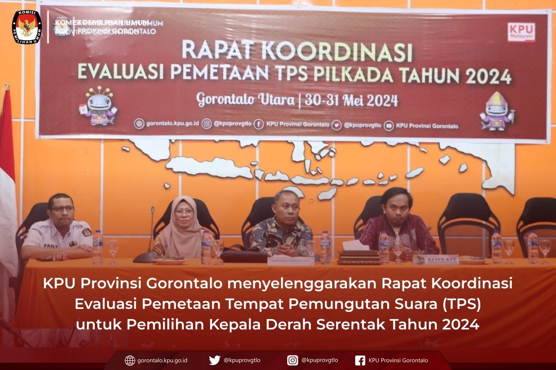 KPU Provinsi Gorontalo menyelenggarakan Rapat Koordinasi Evaluasi Pemetaan Tempat Pemungutan Suara (TPS) untuk Pemilihan Kepala Daerah Tahun 2024