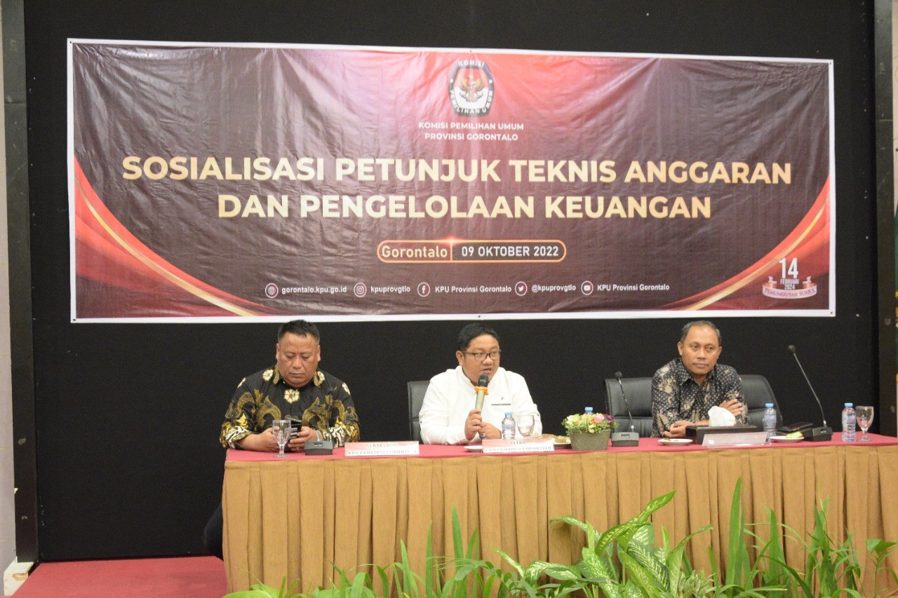 Hal itu diutarakan oleh Ketua KPU Provinsi Gorontalo, Fadliyanto Koem dalam sambutannya sesaat membuka acara Sosialisasi Petunjuk Teknis Anggaran dan Pengelolaan Keuangan yang digelar oleh KPU Provinsi Gorontalo bertempat di Hotel Grand Q Gorontalo, Minggu (9/10/2022).