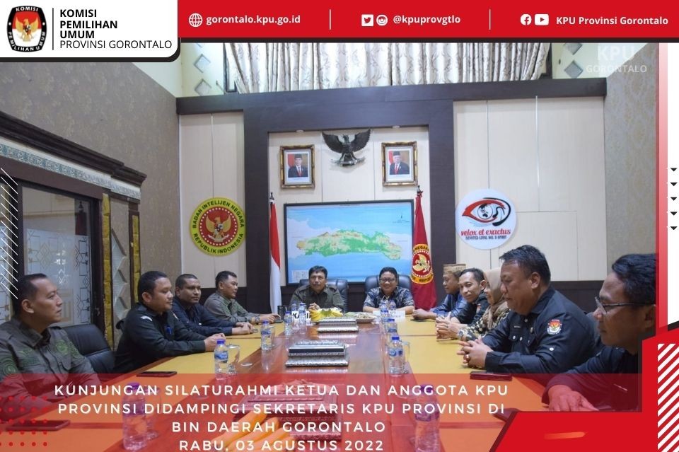 Rangkaian kunjungan silaturahim Ketua dan anggota KPU provinsi beserta Sekretaris KPU Provinsi ke Kantor Badan Intelijen Negara (BIN) Daerah Gorontalo (03/08/22).