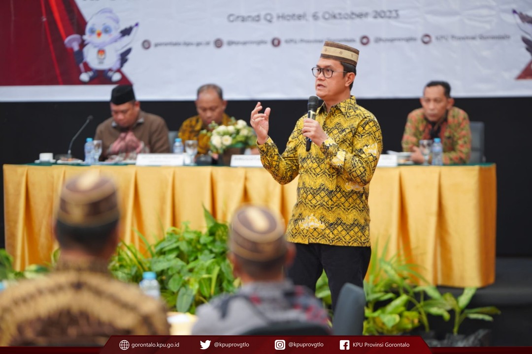 Anggota DKPP Muhammad Tio Aliansyah menjadi narasumber dalam kegiatan Sosialisasi Kode Etik Penyelenggara Pemilu di Lingkungan KPU Provinsi dan KPU Kabupaten/Kota se-Provinsi Gorontalo yang dilaksanakan oleh KPU Provinsi Gorontalo, di Kota Gorontalo, Jumat (6/10/2023).