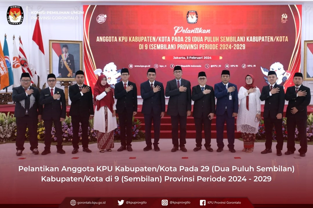 Pelantikan Anggota KPU Kabupaten/Kota Pada 29 (Dua Puluh Sembilan) Kabupaten/Kota di 9 (Sembilan) Provinsi Periode 2024 - 2029