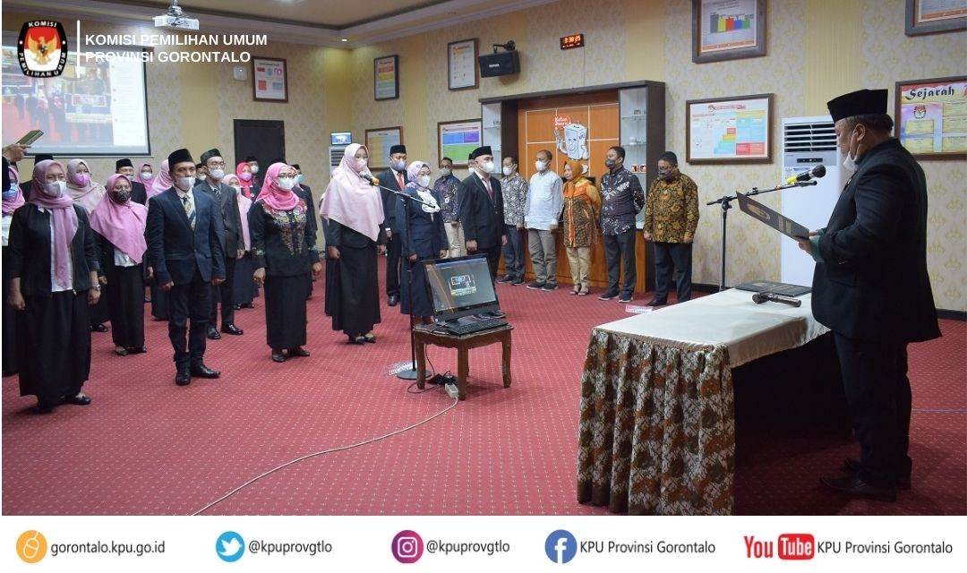 Pelantikan Kepala Sub Bagian dengan rincian yakni 6 orang dari Sekretariat KPU Provinsi, 4 orang dari KPU Bone Bolango, 4 orang dari KPU Kota Gorontalo, 4 orang dari KPU Kabupaten Gorontalo, 4 orang dari KPU Gorontalo Utara, 4 orang dari KPU Boalemo dan 4 orang dari KPU Pohuwato.