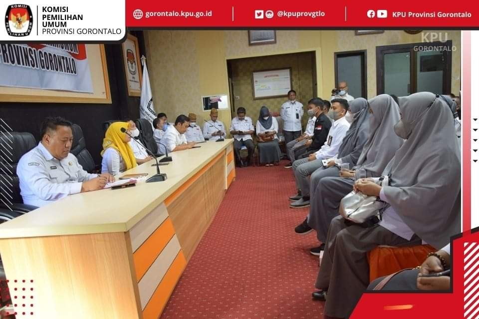 KPU Provinsi Gorontalo menggelar pembinaan terhadap 88 orang Pegawai Pemerintah Non Pegawai Negeri (PPNPN),Pamdal,Pramubakti dan Pengemudi KPU se Provinsi Gorontalo dirangkaian dengan penerimaan Petikan Surat Keputusan Sekretaris KPU Provinsi Gorontalo tentang Pengangkatan Pegawai Pemerintah Non Pegawai Negeri, Bidang Pengamanan, Pramubakti dan Pengemudi dilingkungan Sekretariat KPU Provinsi dan KPU Kabupaten/Kota se Provinsi Gorontalo di RPP Dulohupa (10/01/22).