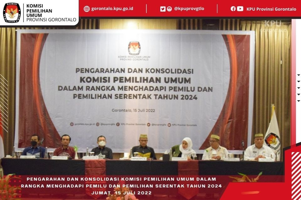 Komisi Pemilihan Umum Provinsi Gorontalo menggelar kegiatan Pengarahan dan Konsolidasi Komisi Pemilihan Umum dalam rangka menghadapi Pemilu dan Pemilihan Serentak Tahun 2024 di Hotel Aston Kota Gorontalo (15/07/22).