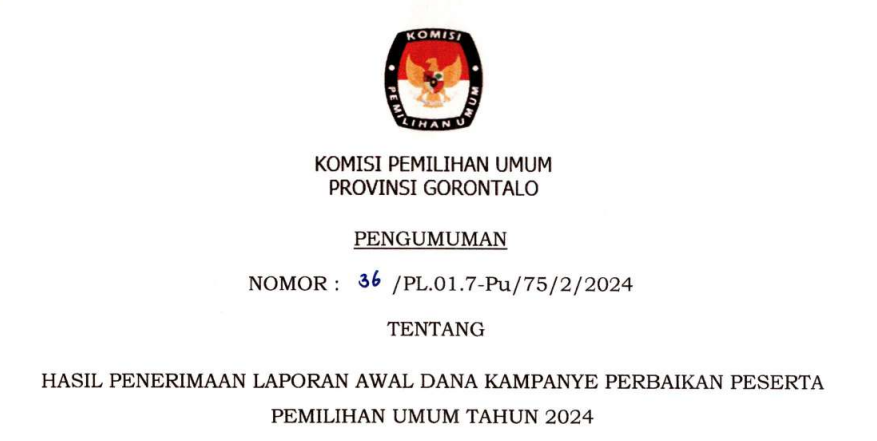 Pengumuman Hasil Penerimaan LADK Perbaikan Peserta Pemilu Tahun 2024