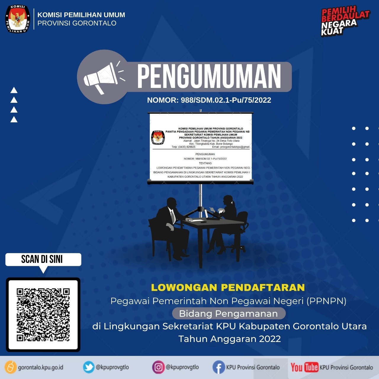 Pengumuman Tentang Lowongan Pendaftaran Pegawai Pemerintah Non Pegawai Negeri Bidang Pengamanan di Lingkungan Sekretariat Komisi Pemilihan Umum Kabupaten Gorontalo Utara Tahun Anggaran 2022