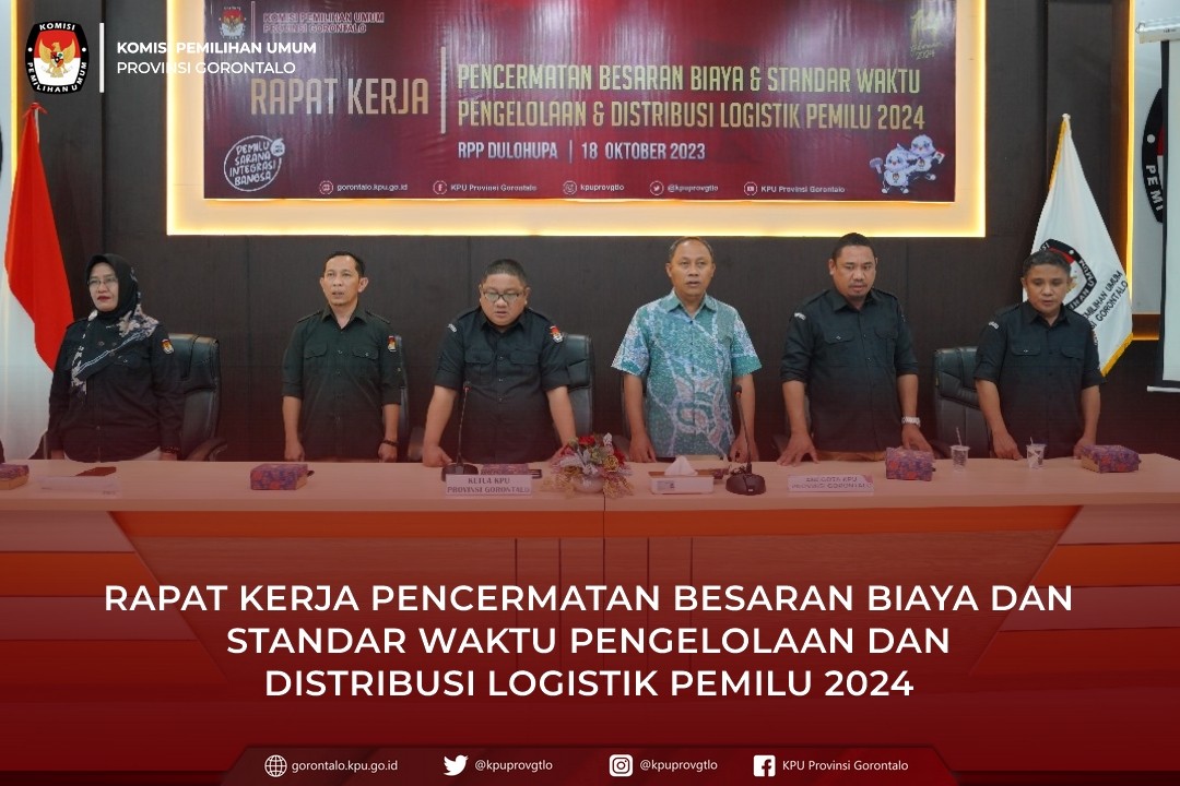 Rapat Kerja Pencermatan Besaran Biaya dan Standar Waktu Pengelolaan dan Distribusi Logistik Pemilu 2024 bersama KPU Kabupaten/Kota se Provinsi Gorontalo