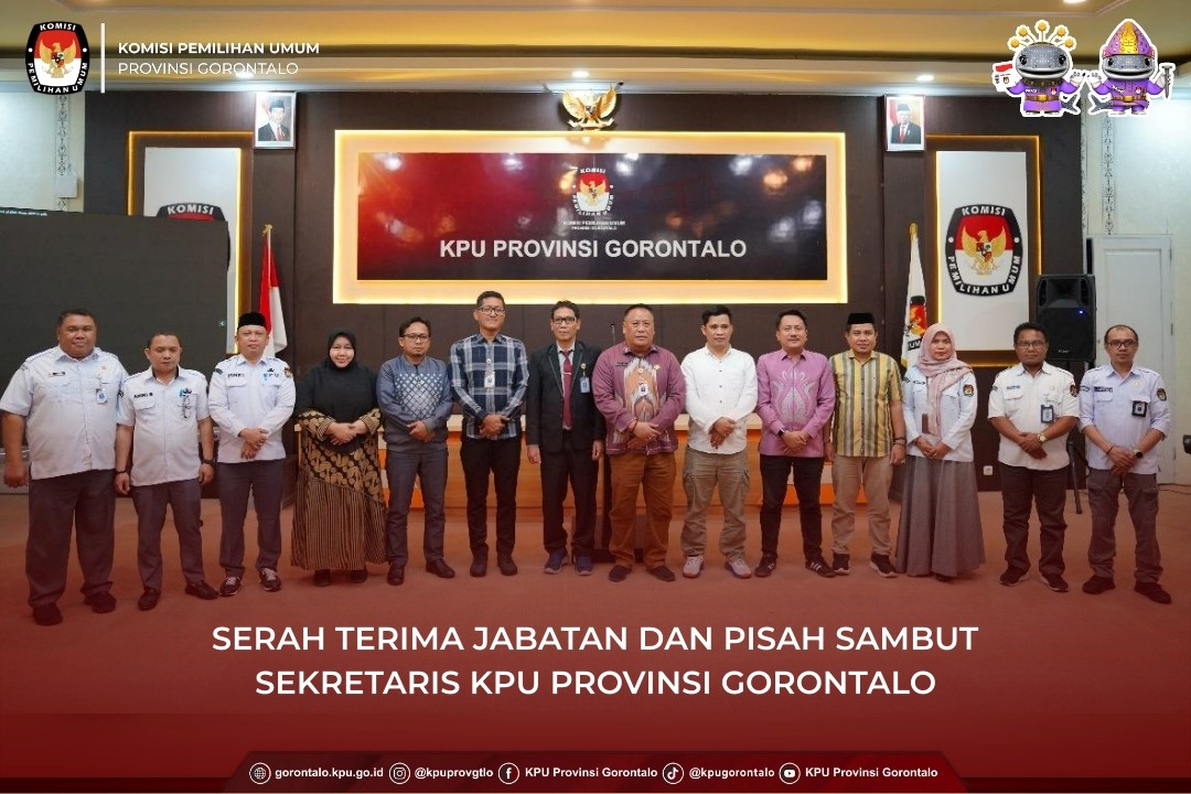 #TemanPemilih, Provinsi Gorontalo menggelar acara serah terima jabatan dan pisah sambut Sekretaris KPU Provinsi Gorontalo pada hari ini di Kantor KPU Provinsi Gorontalo. Kegiatan tersebut dibuka oleh Anggota KPU, Opan Hamsah, dan dihadiri oleh berbagai pejabat serta staf KPU di lingkungan Provinsi Gorontalo.