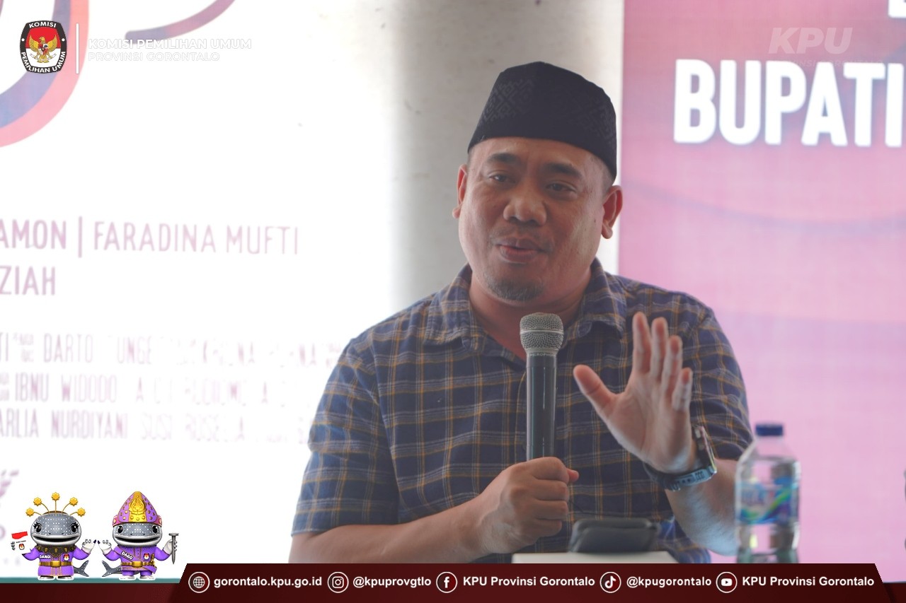 Dalam sambutannya Risan mengatakan bahwa tujuan KPU Provinsi Gorontalo untuk turun ke kampus-kampus adalah dalam rangka melaksanakan sosialisasi Tahapan Pemilihan Kepala Daerah tahun 2024 yang dirangkaikan dengan nonton bareng dengan tema "Tepatilah Janji" untuk inspirasi demokrasi dalam perhelatan pemilihan kepala daerah di Provinsi Gorontalo.