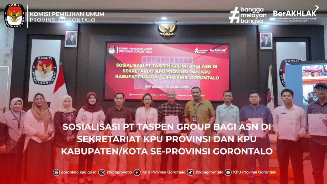 Gorontalo, gorontalo.kpu.go.id - Komisi Pemilihan Umum (KPU) Provinsi dan KPU Kabupaten/Kota Se Provinsi Gorontalo secara hybrid menerima sosialisasi dari PT Taspen (Persero) Group bagi ASN Sekretariat, kegiatan berlangsung di aula KPU Provinsi Gorontalo pada Kamis (24/07/2025).