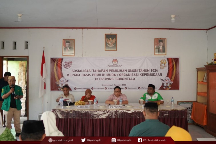 Dalam rangka meningkatkan kualitas dan kuantitas partisipasi serta literasi politik Pemilih Muda dalam proses demokrasi elektoral menuju Pemilu Serentak Tahun 2024, KPU Provinsi Gorontalo bekerjasama dengan Gerakan Pemuda Anshor Provinsi Gorontalo menggelar Sosialisasi Tahapan Pemilihan Umum Tahun 2024 kepada Basis Pemilih Muda/Organisasi Kepemudaan bertempat di PKBM Desa Lauwonu, Kecamatan Tilango, Kabupaten Gorontalo, (05/08/2023).