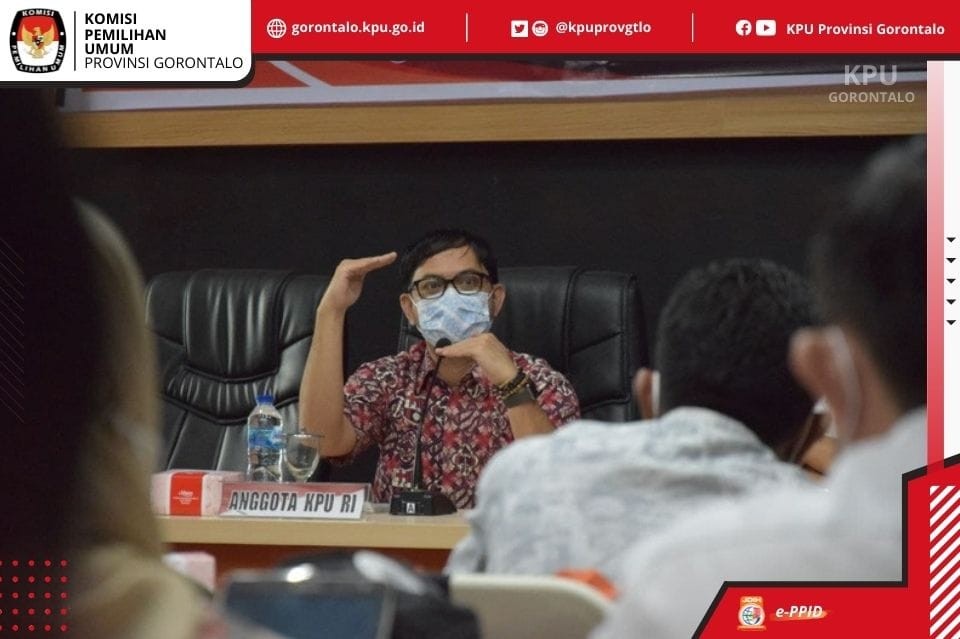Hari ini (25/09/21) Anggota KPU RI Viryan Aziz memberikan arahan kepada Ketua dan Anggota beserta Sekretaris KPU Kabupaten dan Kota se Provinsi Gorontalo yang mengikuti kegiatan Rapat Koordinasi Digitalisasi Pemilu "Teknologi Infornasi dan Komunikasi Menyongsong Pemilu dan Pemilihan Tahun 2024" di Aula RPP KPU Provinsi Gorontalo.
