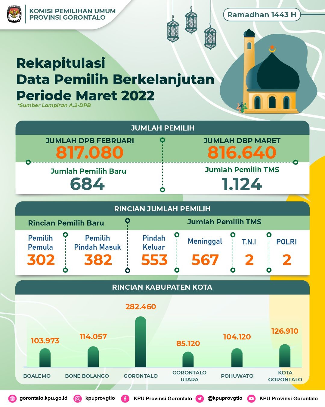 Rekapitulasi Pemutakhiran Data Pemilih Berkelanjutan Periode Maret Tahun 2022
